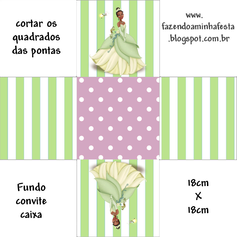 Convite Caixa Fundo Princesa Tiana(A princesa e o Sapo):