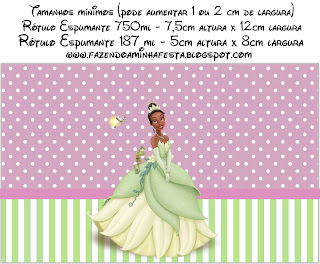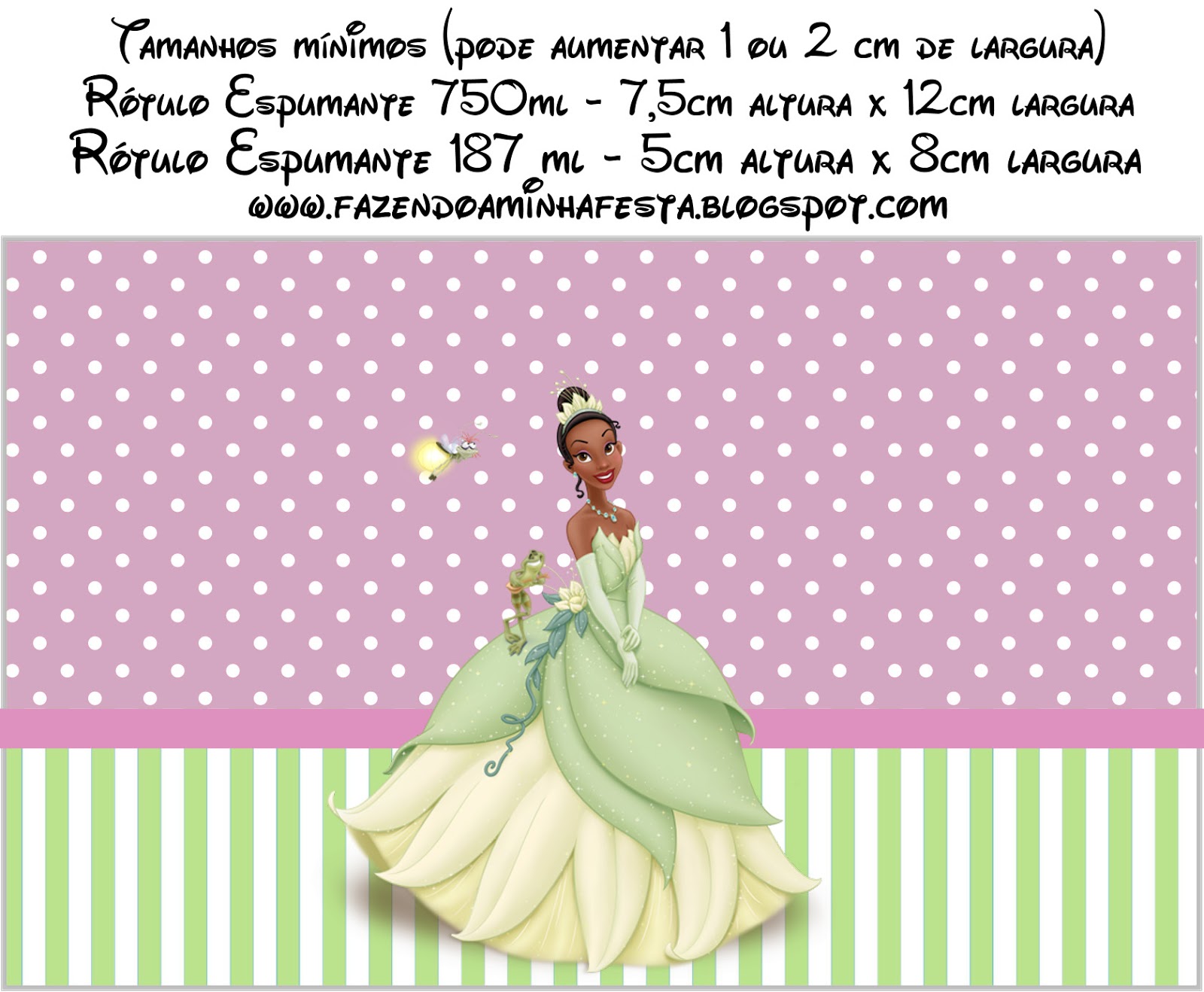 Rótulo Champagne, Vinho e Espumante Princesa Tiana(A princesa e o Sapo):
