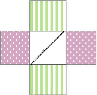 Caixa Pipoca Verde Listrado e Lilás Poá: