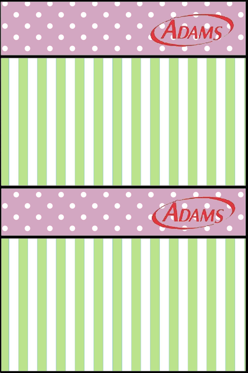 Rótulo Chiclets Adams Verde Listrado e Lilás Poá: