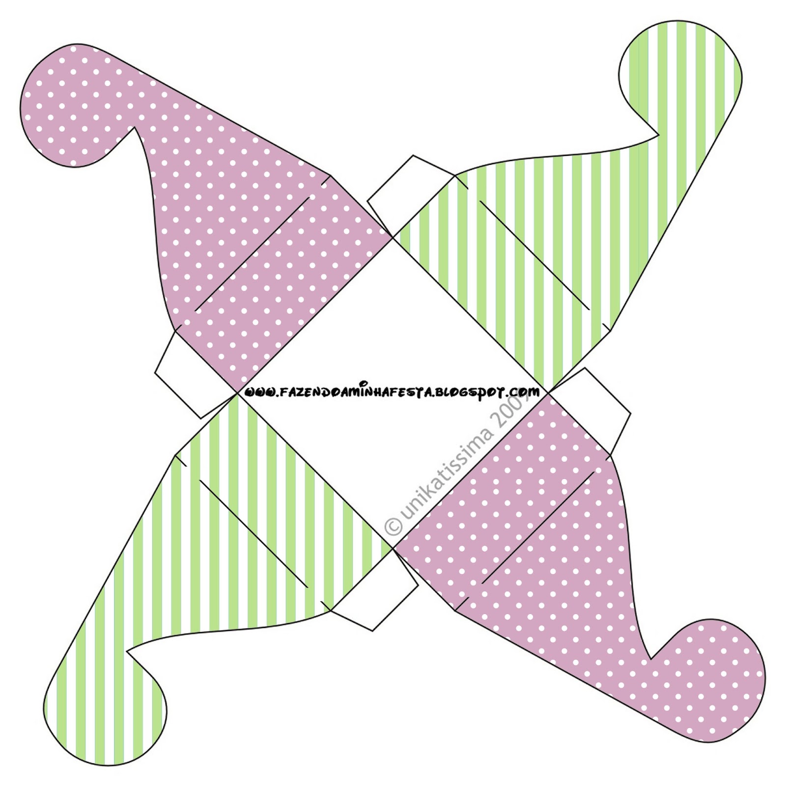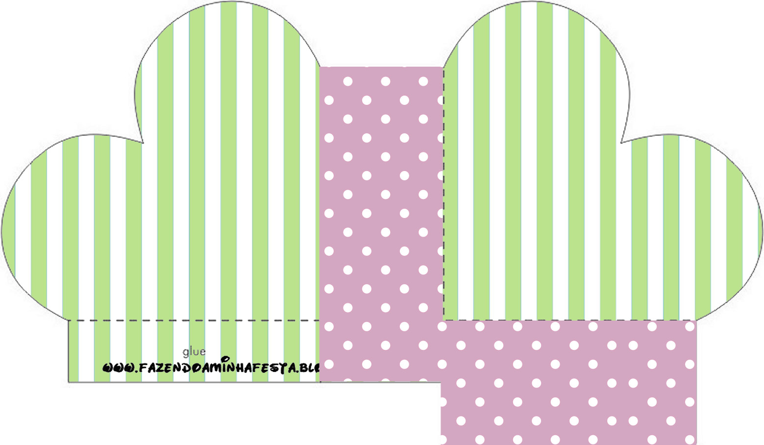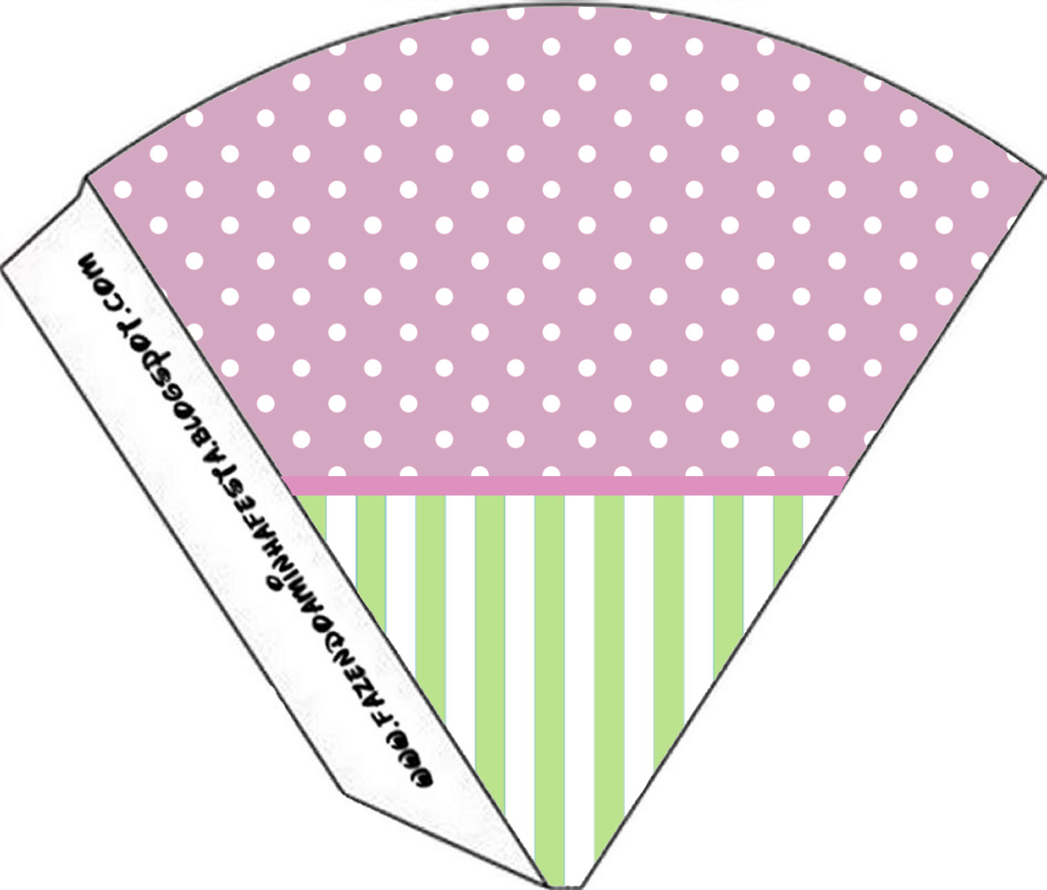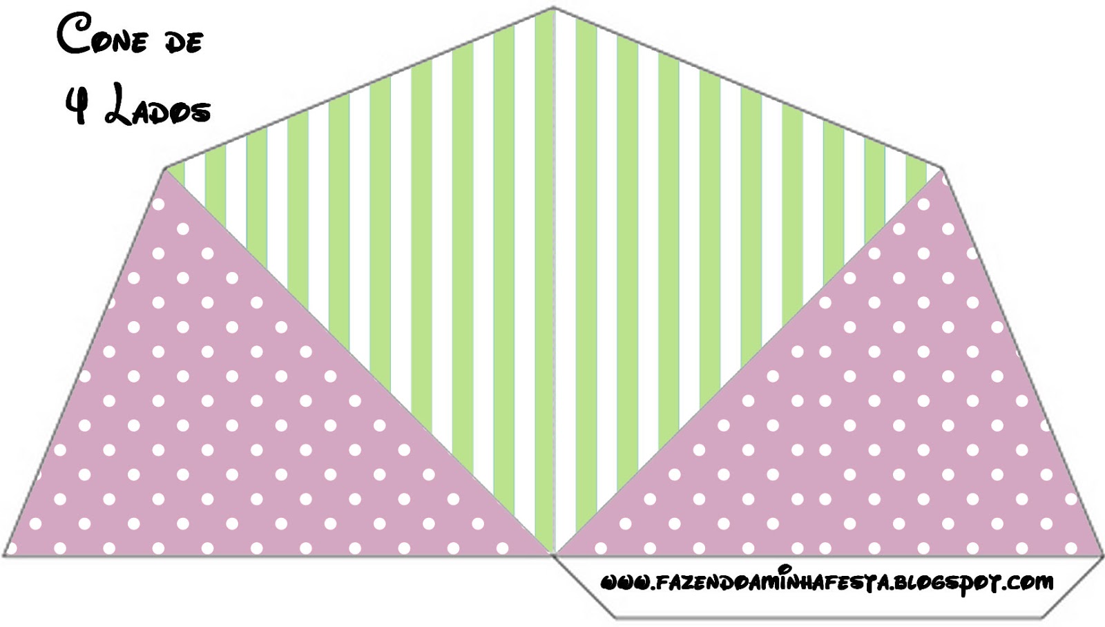 Cone Guloseimas 4 lados Verde Listrado e Lilás Poá: