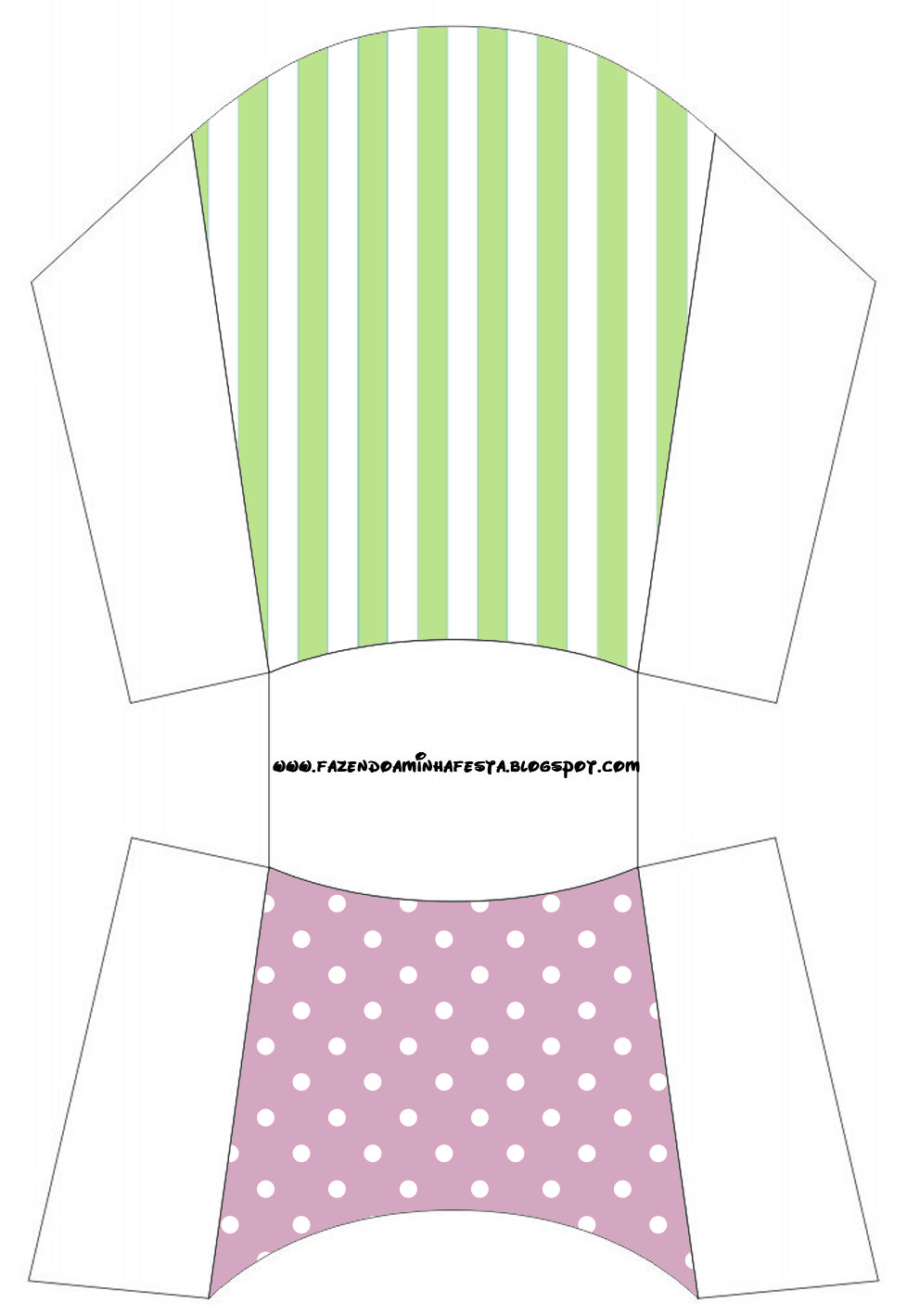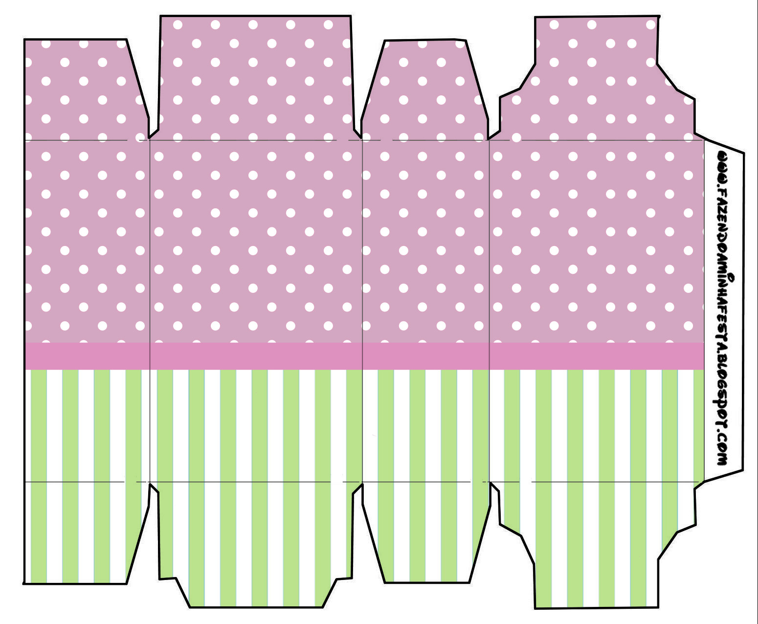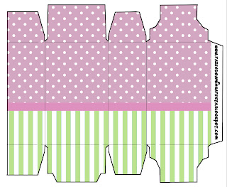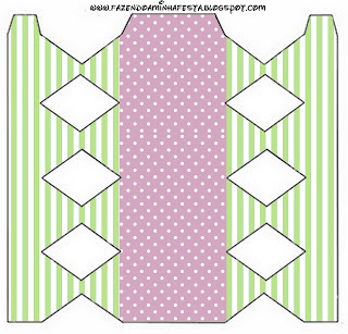 Caixa Pipoca Verde Listrado e Lilás Poá: