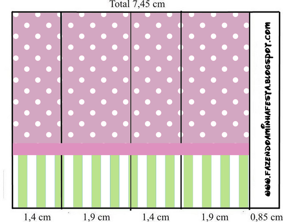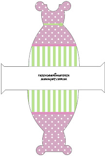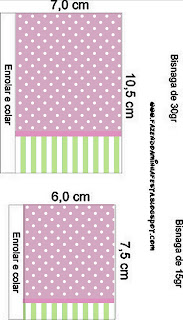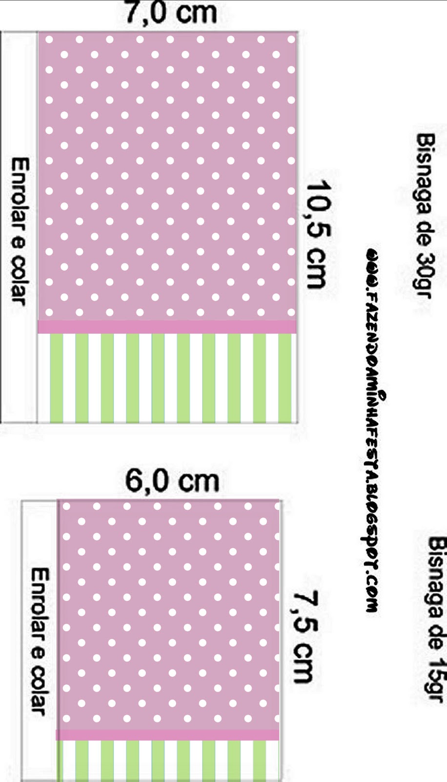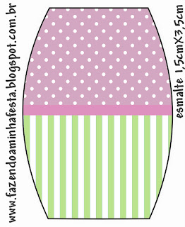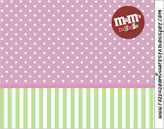 Rótulo Mini M&M Verde Listrado e Lilás Poá: