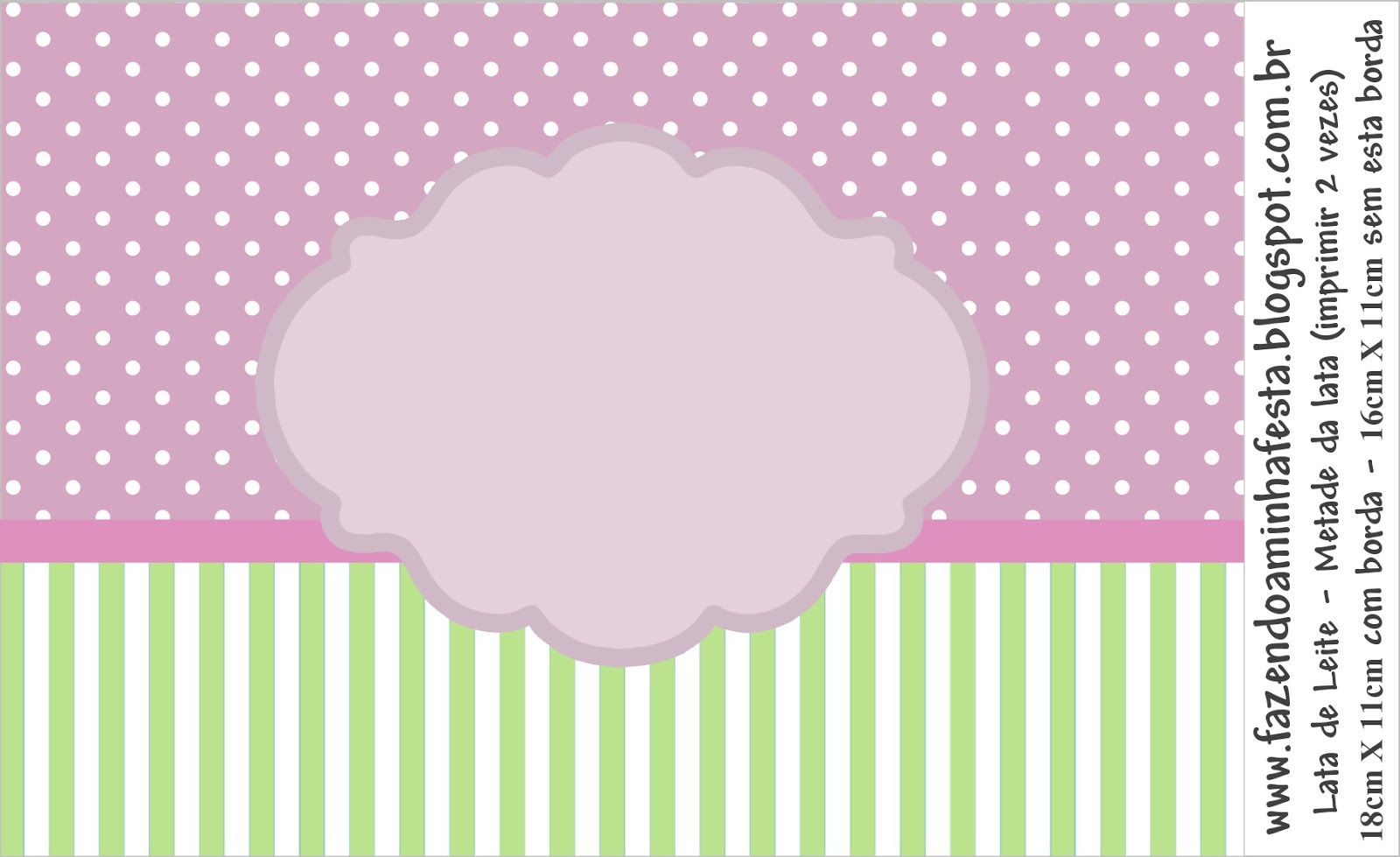 Rótulo Lata de Leite Verde Listrado e Lilás Poá: