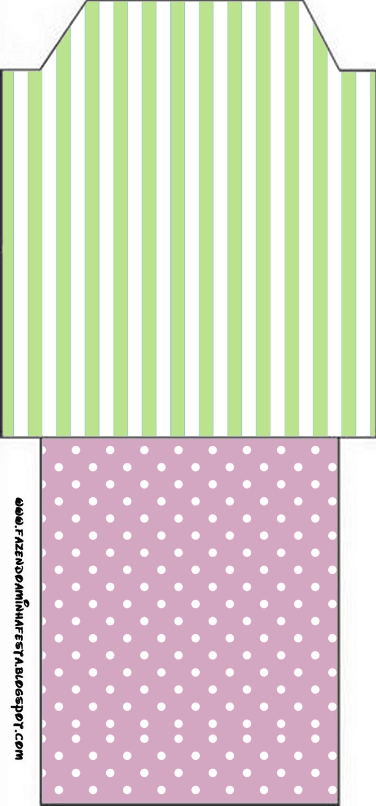 Envelope Fritas Verde Listrado e Lilás Poá:
