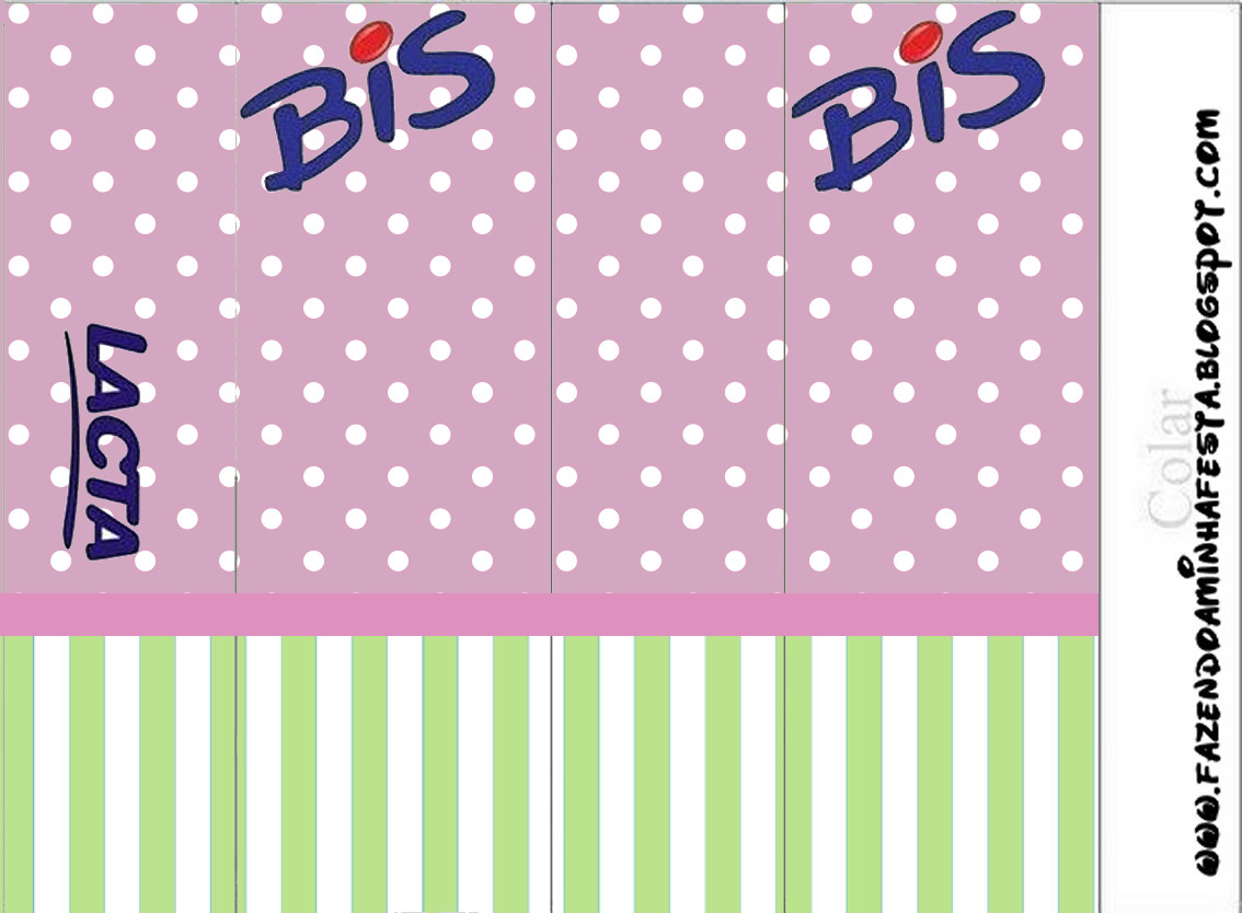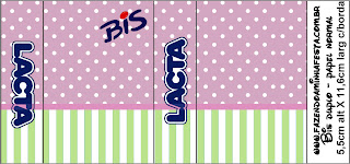 Rótulo Bis com Logo Lacta Verde Listrado e Lilás Poá: