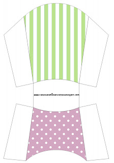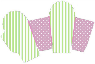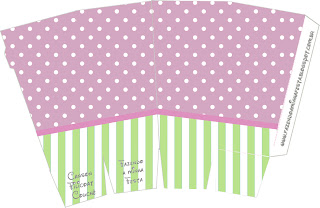 Saias Wrappers para Cupcakes Verde Listrado e Lilás Poá: