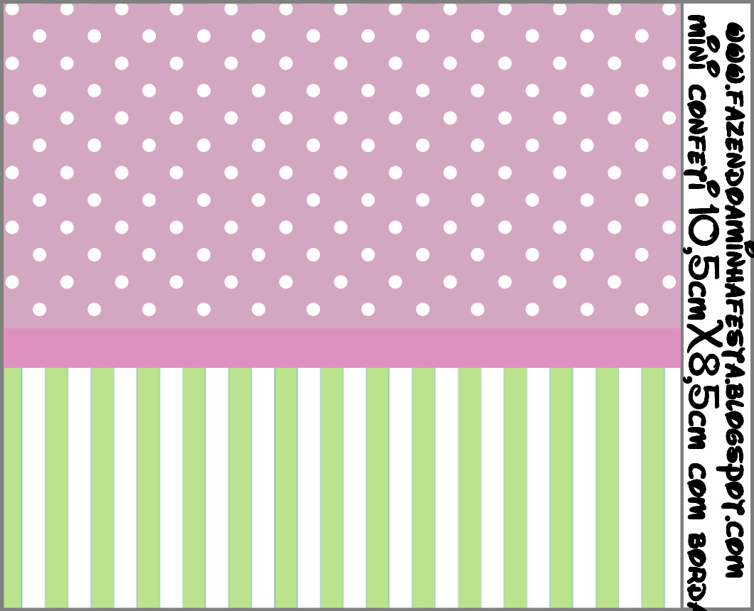 Rótulo Mini Confeti Verde Listrado e Lilás Poá: