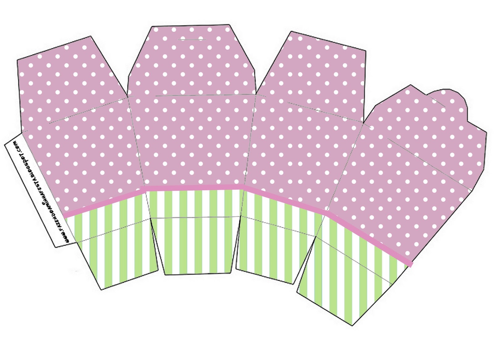 Caixa Cupcake Verde Listrado e Lilás Poá: