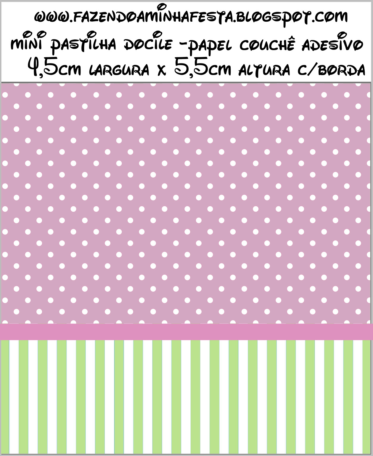 Rótulo Pastilha Docile Verde Listrado e Lilás Poá: