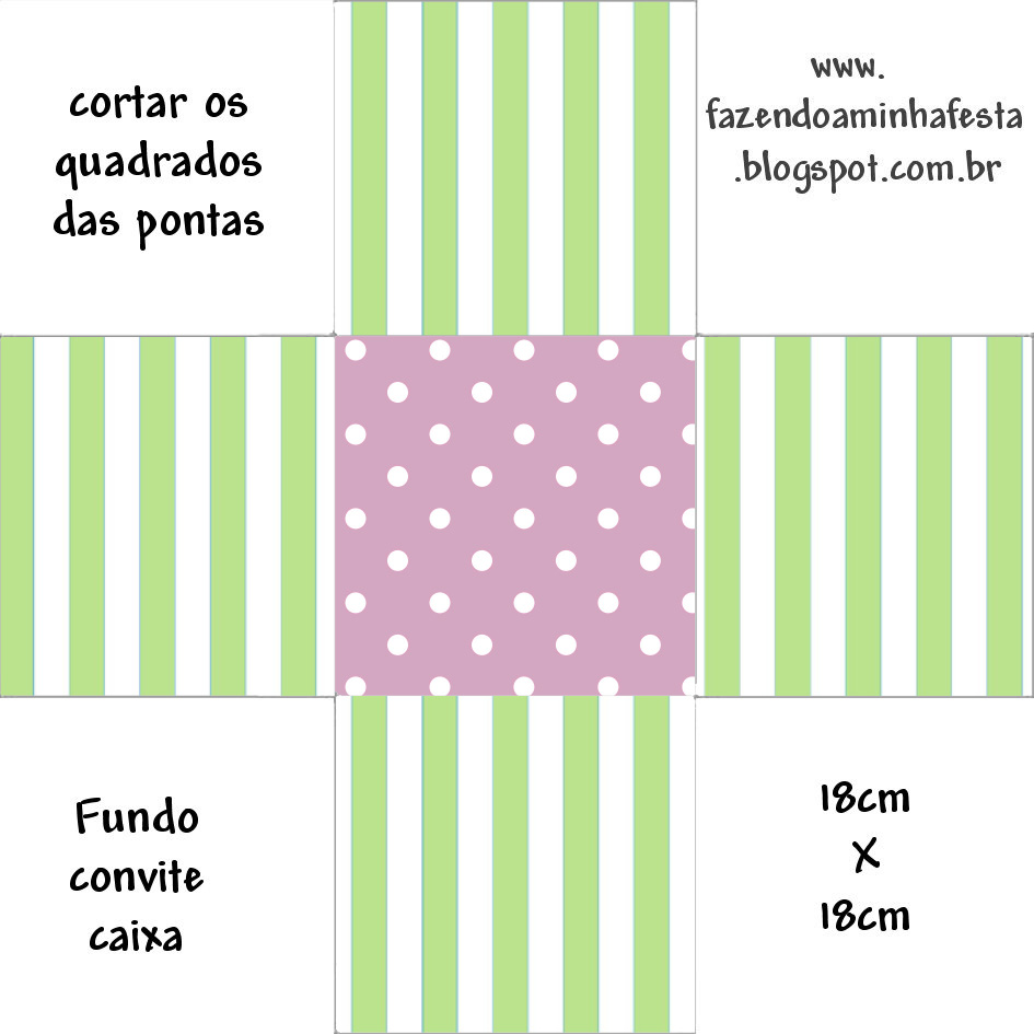 Convite Caixa Tampa Verde Listrado e Lilás Poá: