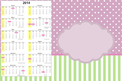 Convite Calendário 2014 Verde Listrado e Lilás Poá: