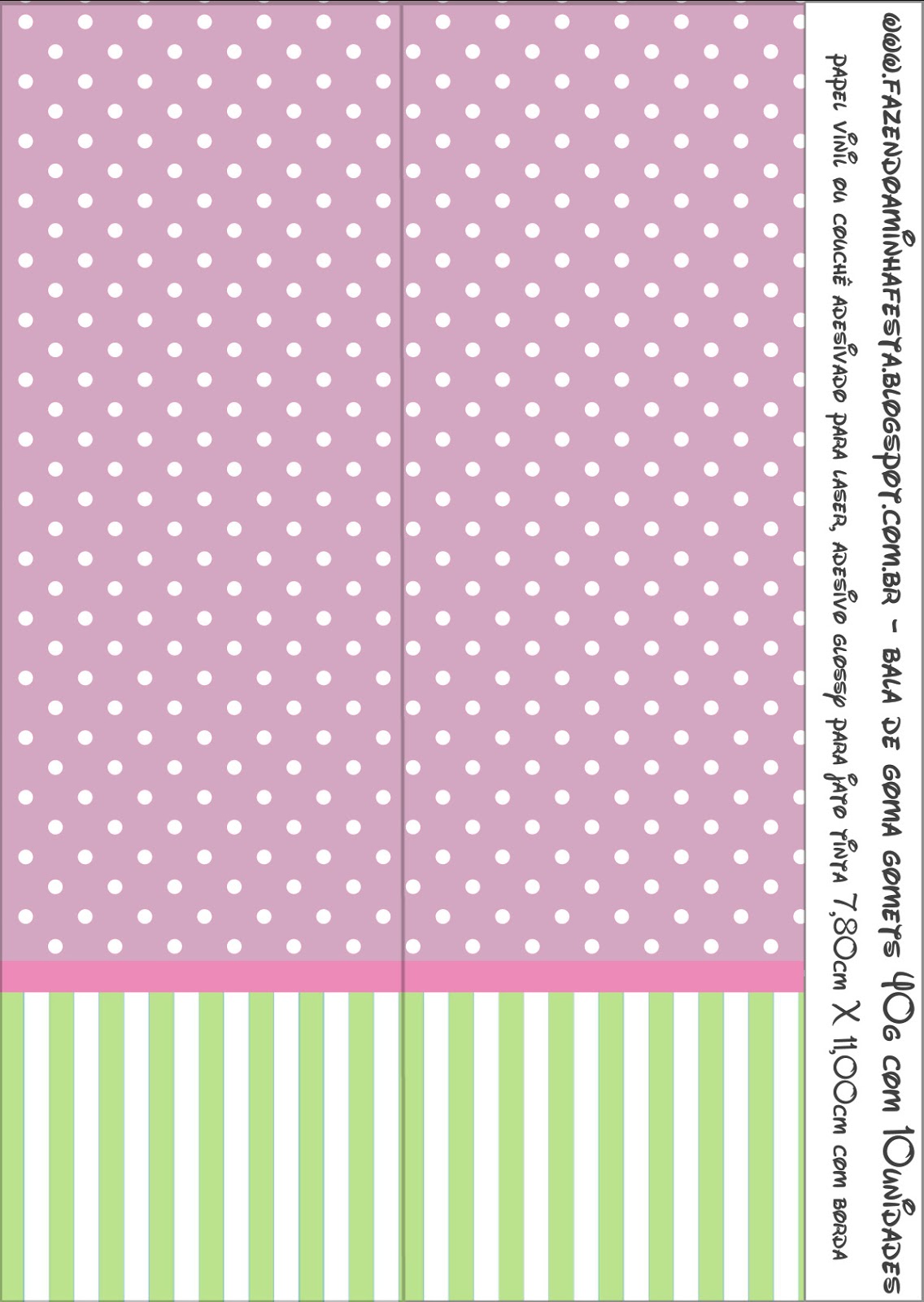 Rótulo Bala de Goma Gomets Verde Listrado e Lilás Poá: