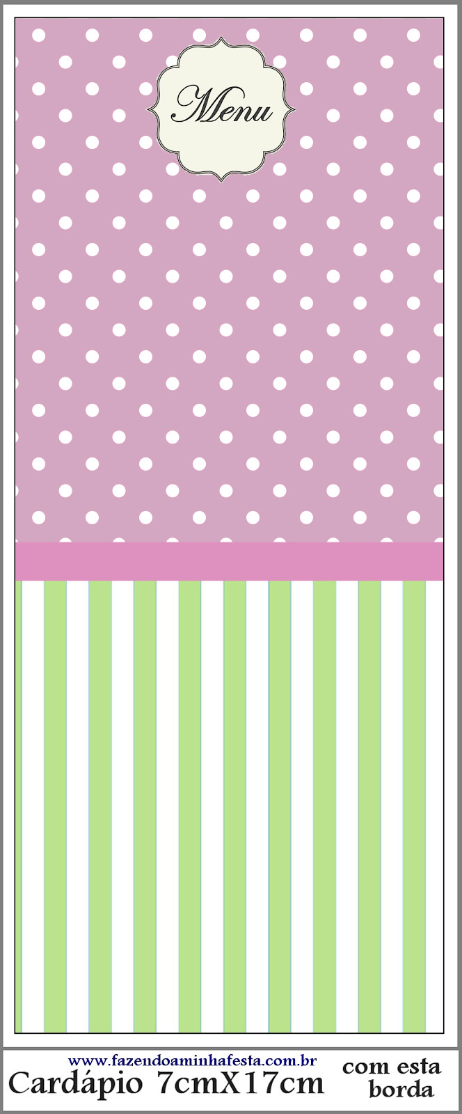 Verde Listrado e Lilás Poá – Kit Completo com molduras para convites, rótulos para guloseimas, lembrancinhas e imagens!