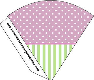 Cone Guloseimas Verde Listrado e Lilás Poá: