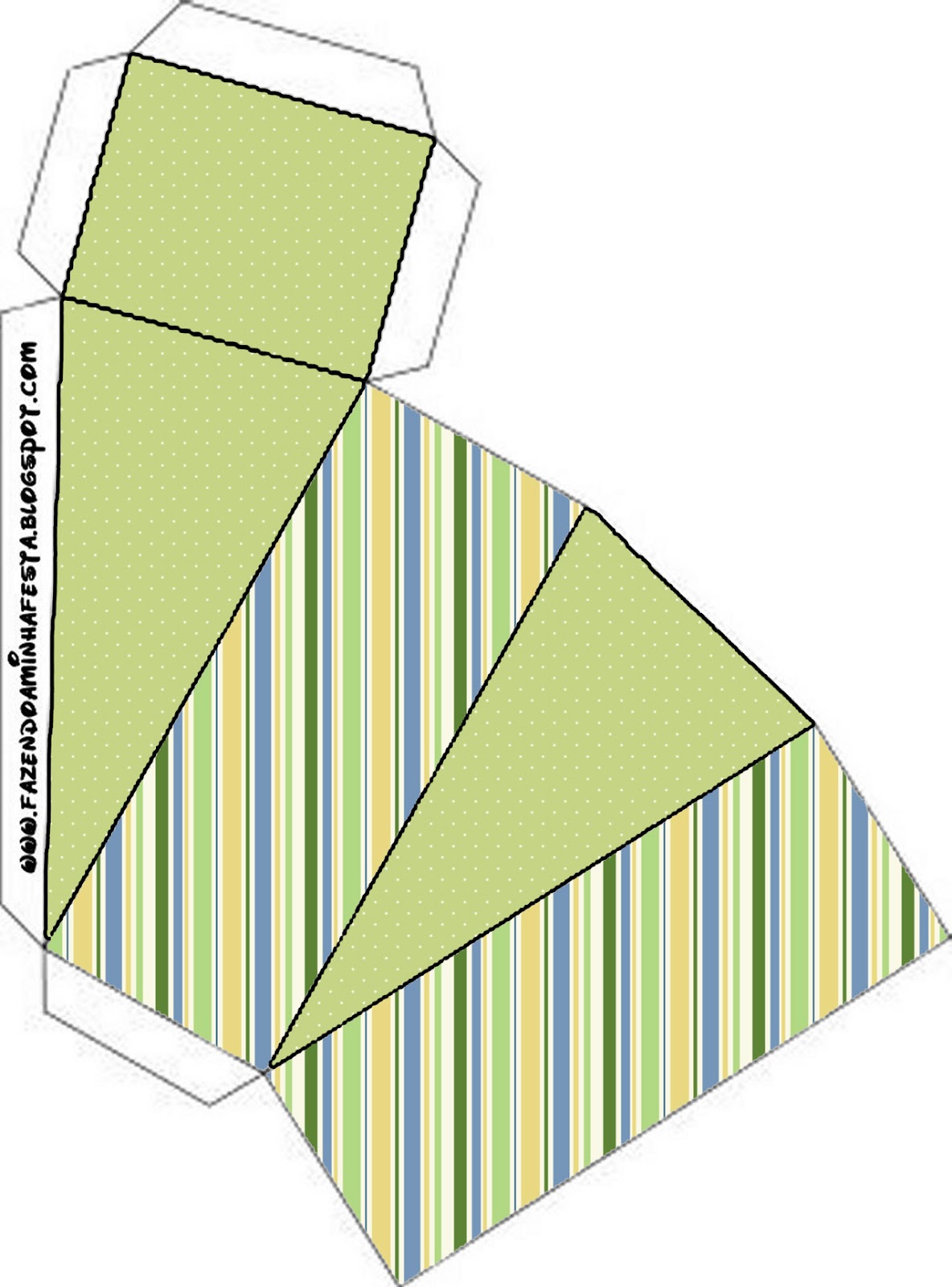 Cone Guloseimas 4 lados Verde Poá e Listras: