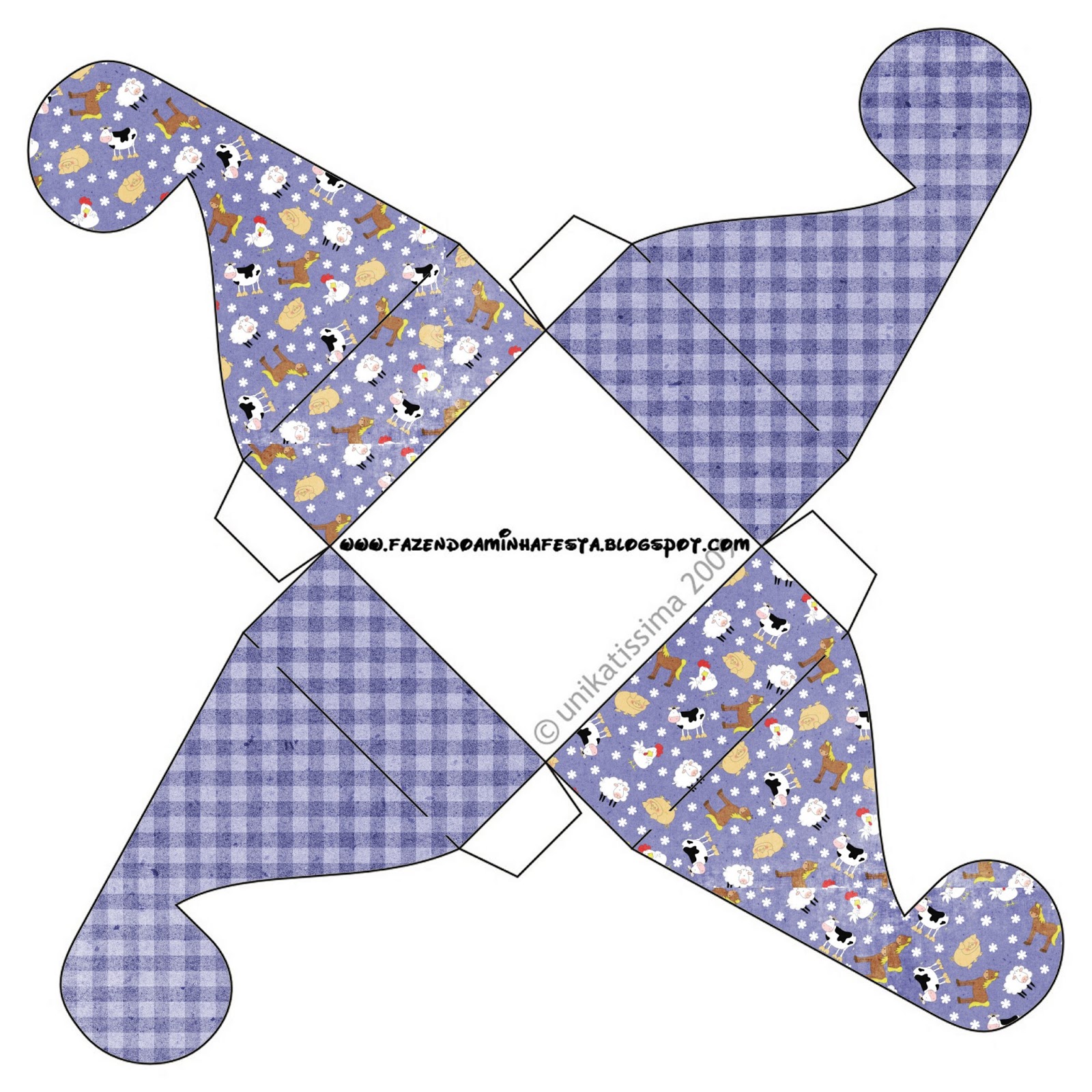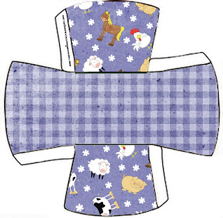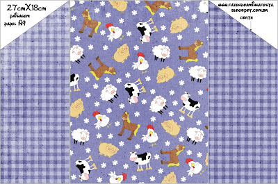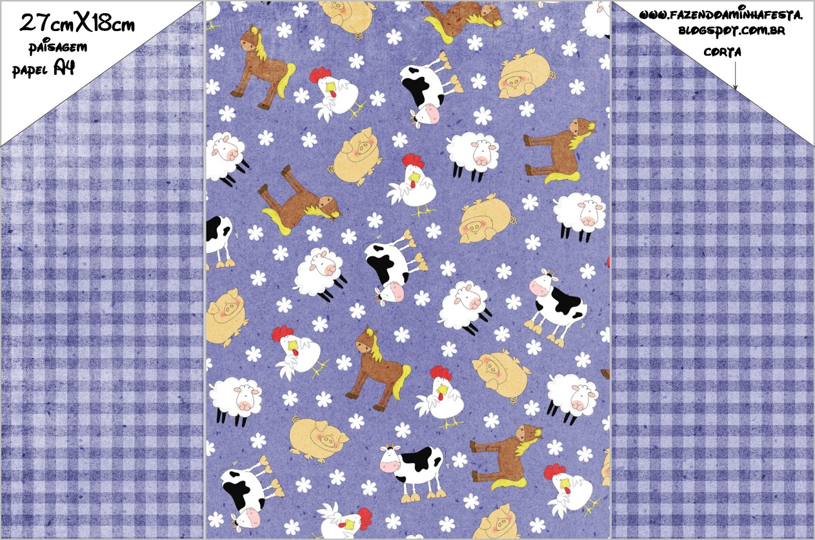 Convite Caixa Tampa Xadrez Azul e Animais: