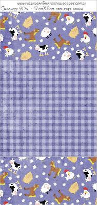 Rótulo Bis Duplo Xadrez Azul e Animais: