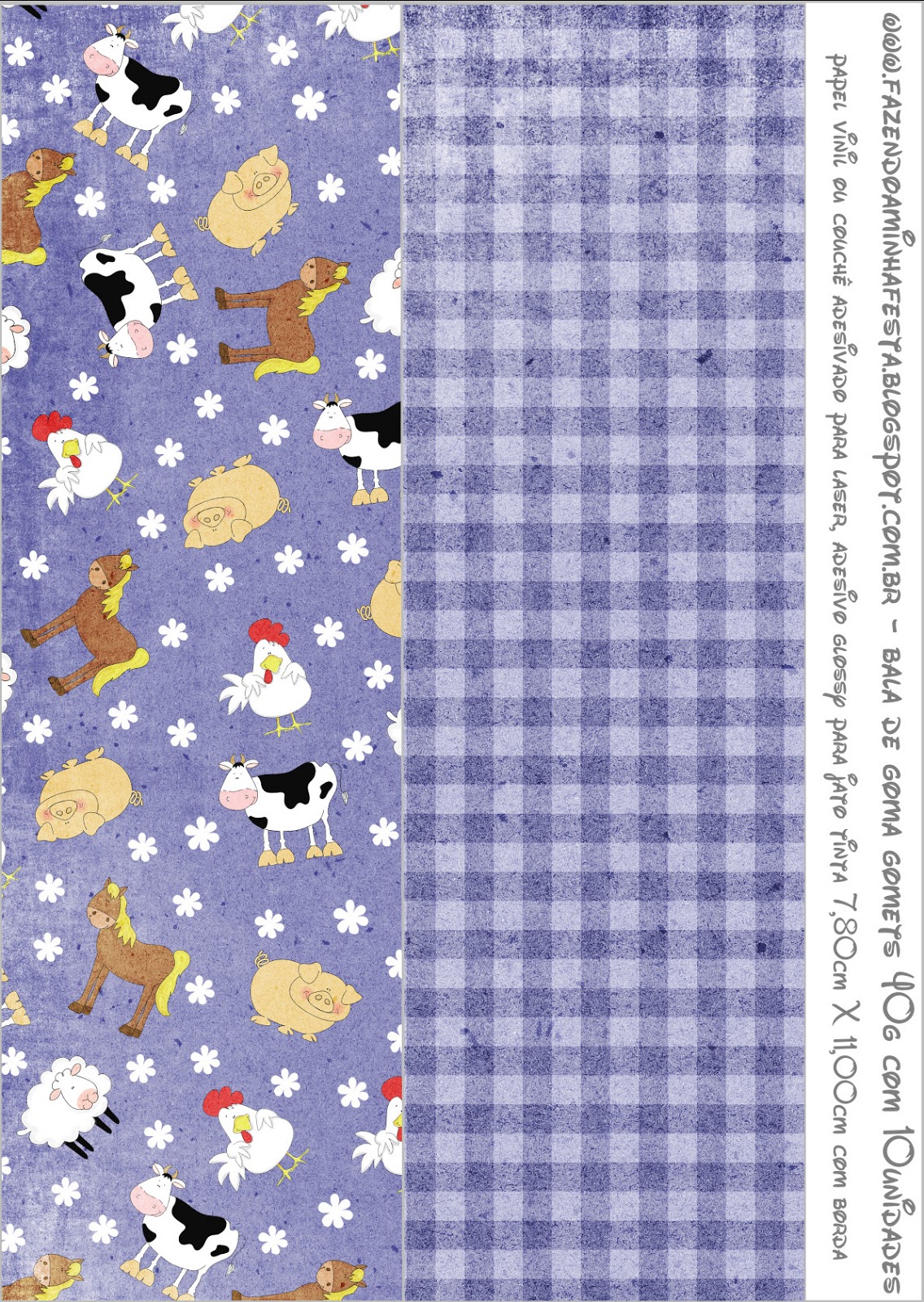 Rótulo Bala de Goma Gomets Xadrez Azul e Animais: