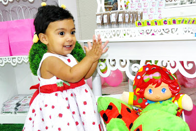 Uaaaau!! Vejam a super festa que nossa leitora Andressa Souza fez para sua filha Alice para comemorar seu primeiro ano com o Tema Moranguinho Baby – CLIQUE AQUI E VEJA O KIT!