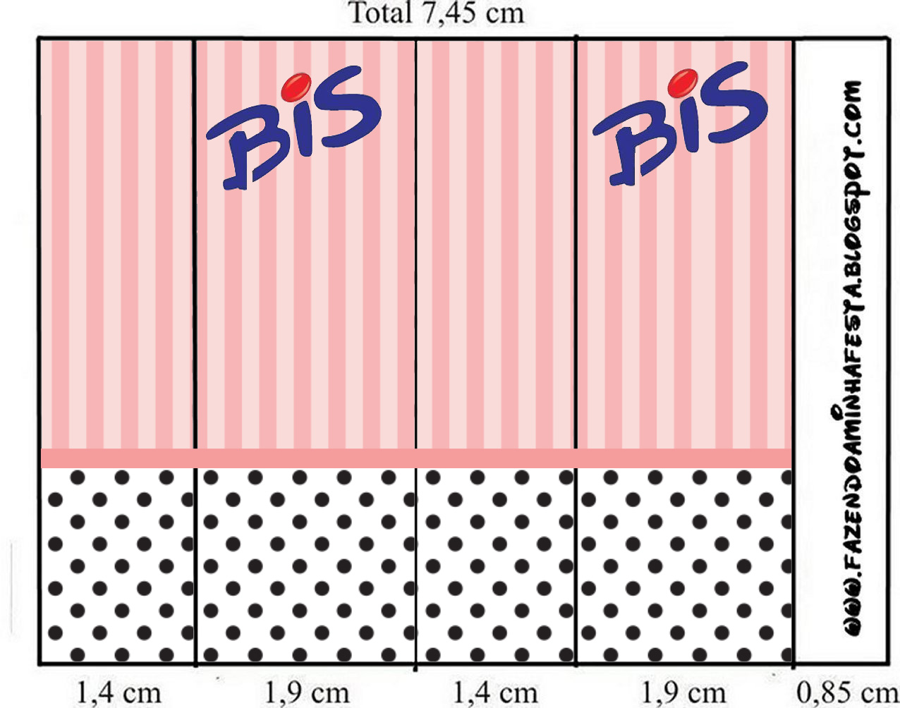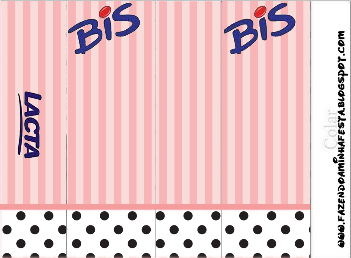 Rótulo Bis com Logo Lacta Listras Rosa e Poá: