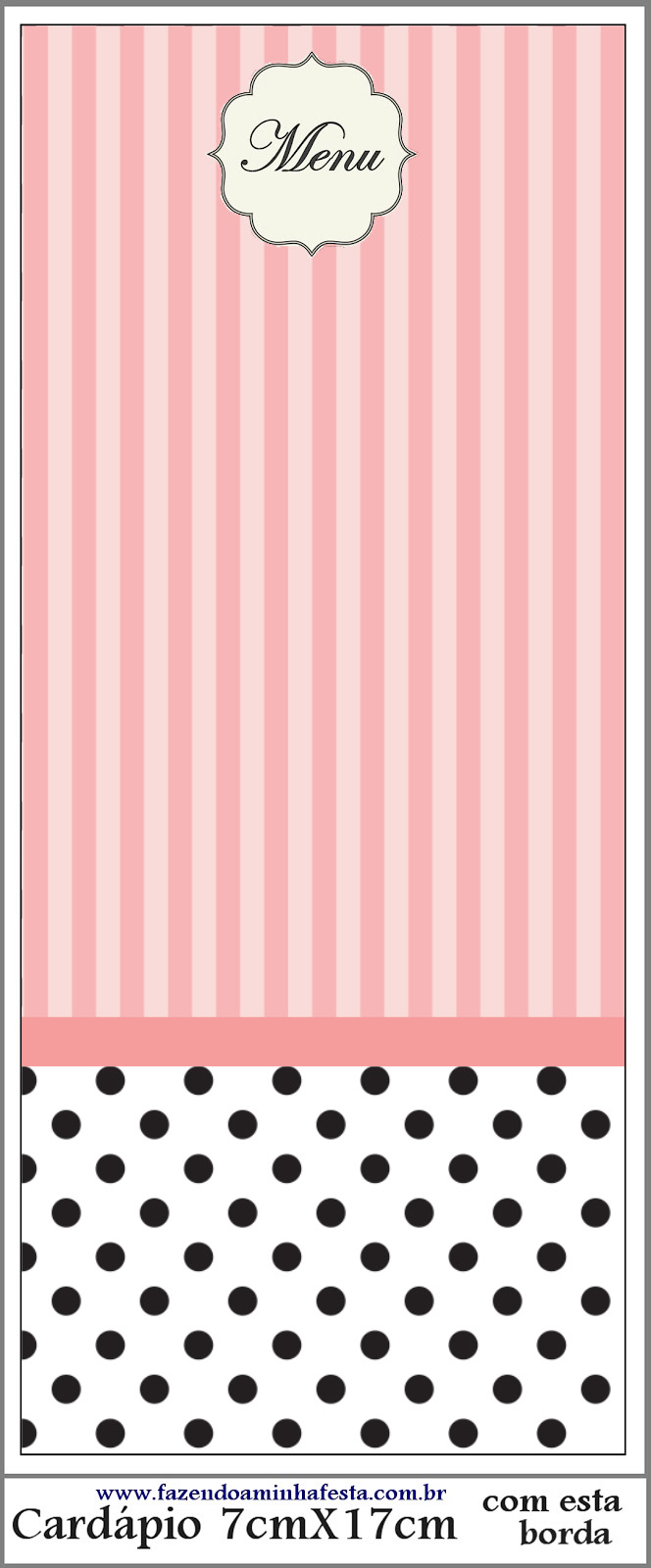 Convite, Cardápio ou Cronograma em Z Listras Rosa e Poá: