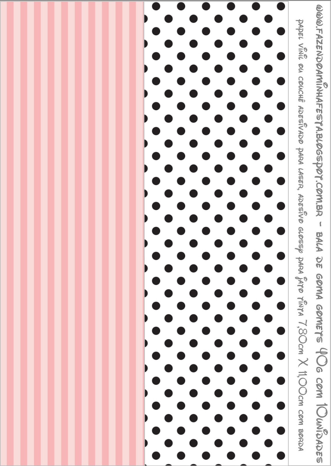 Rótulo Bala de Goma Gomets Listras Rosa e Poá: