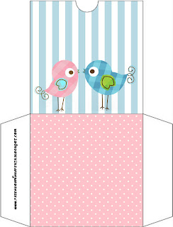Envelope do Convite Passarinhos Azul e Rosa: