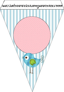 Bandeirinha Sanduiche Passarinhos Azul e Rosa: