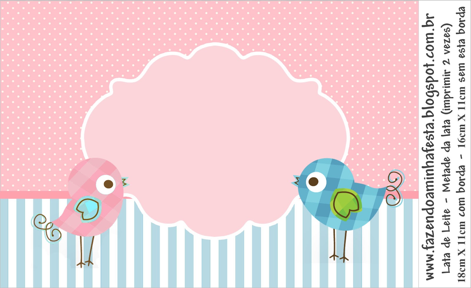 Rótulo Lata de Leite Passarinhos Azul e Rosa: