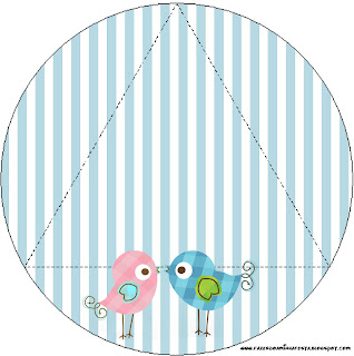 Convite Pirulito Passarinhos Azul e Rosa: