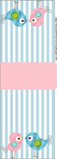 Rótulo Garrafas Passarinhos Azul e Rosa: