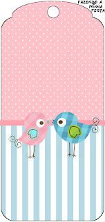 Tag Agradecimento Passarinhos Azul e Rosa: