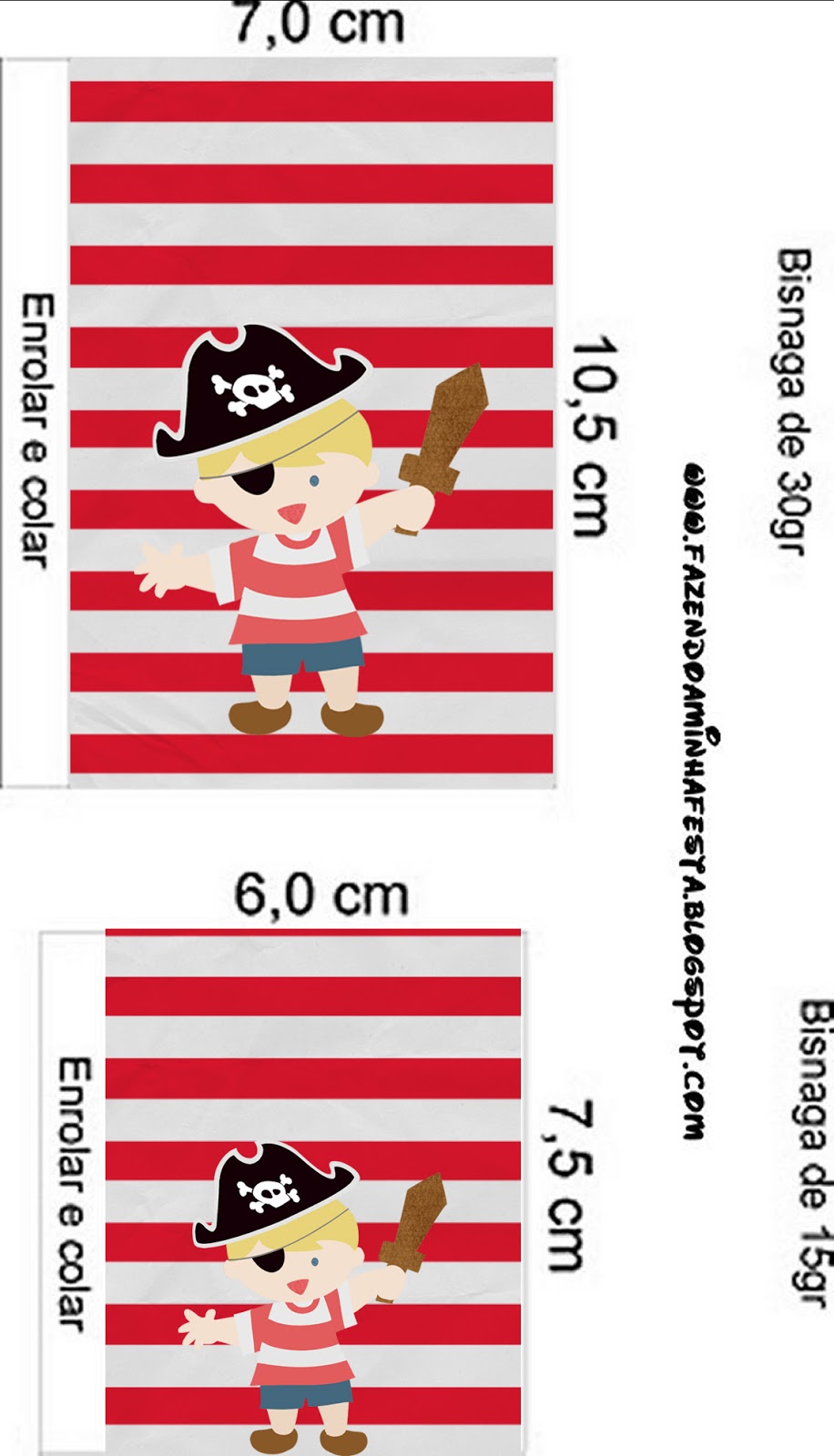 Rótulo Pirulito Mastigável Pirata Menino: