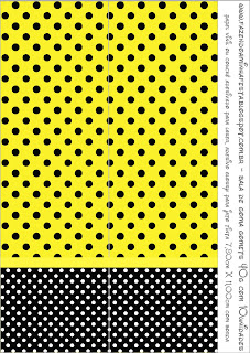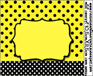 Rótulo Mini Confeti Poá Amarelo, Preto e Branco: