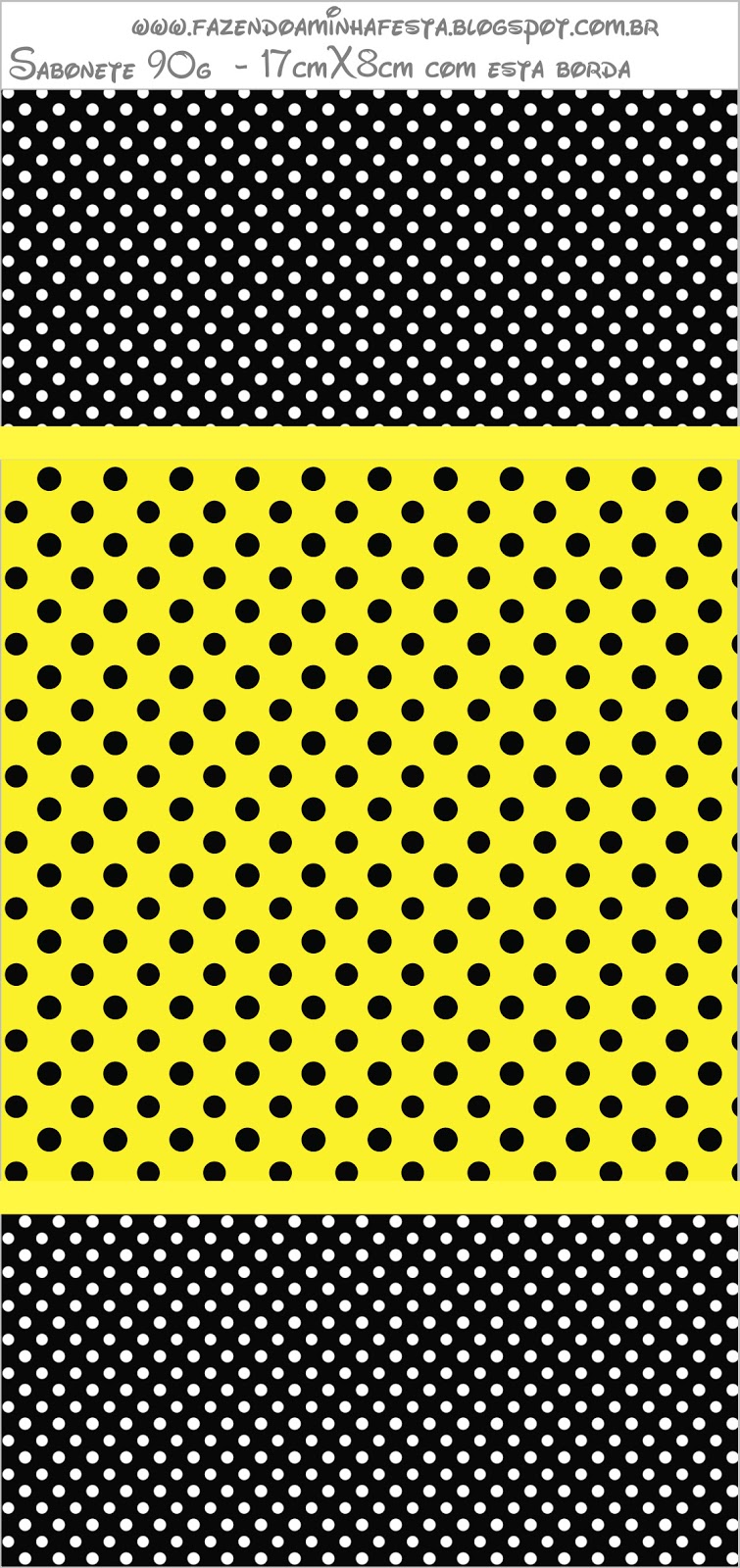 Rótulo Sabonete Poá Amarelo, Preto e Branco: