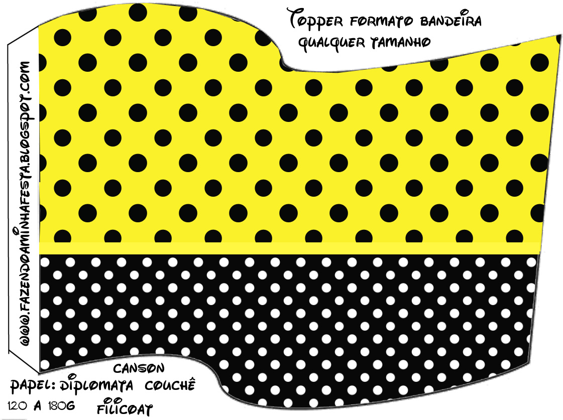 Bandeirinha Sanduiche Poá Amarelo, Preto e Branco: