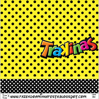 Rótulo Mini Trakinas Poá Amarelo, Preto e Branco: