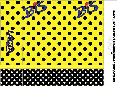 Rótulo Bis com Logo Lacta Poá Amarelo, Preto e Branco: