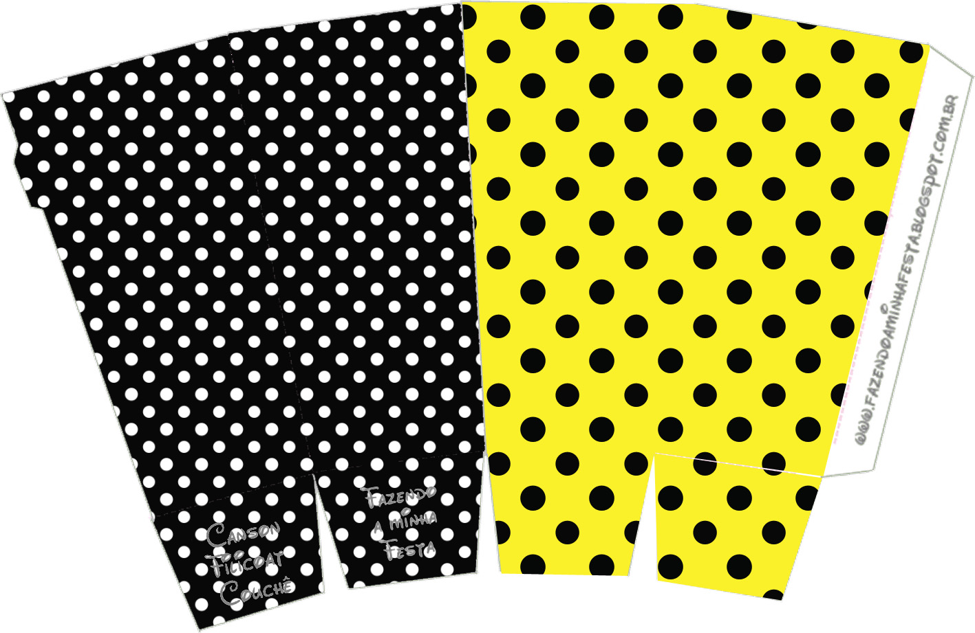 Caixa Pipoca Poá Amarelo, Preto e Branco: