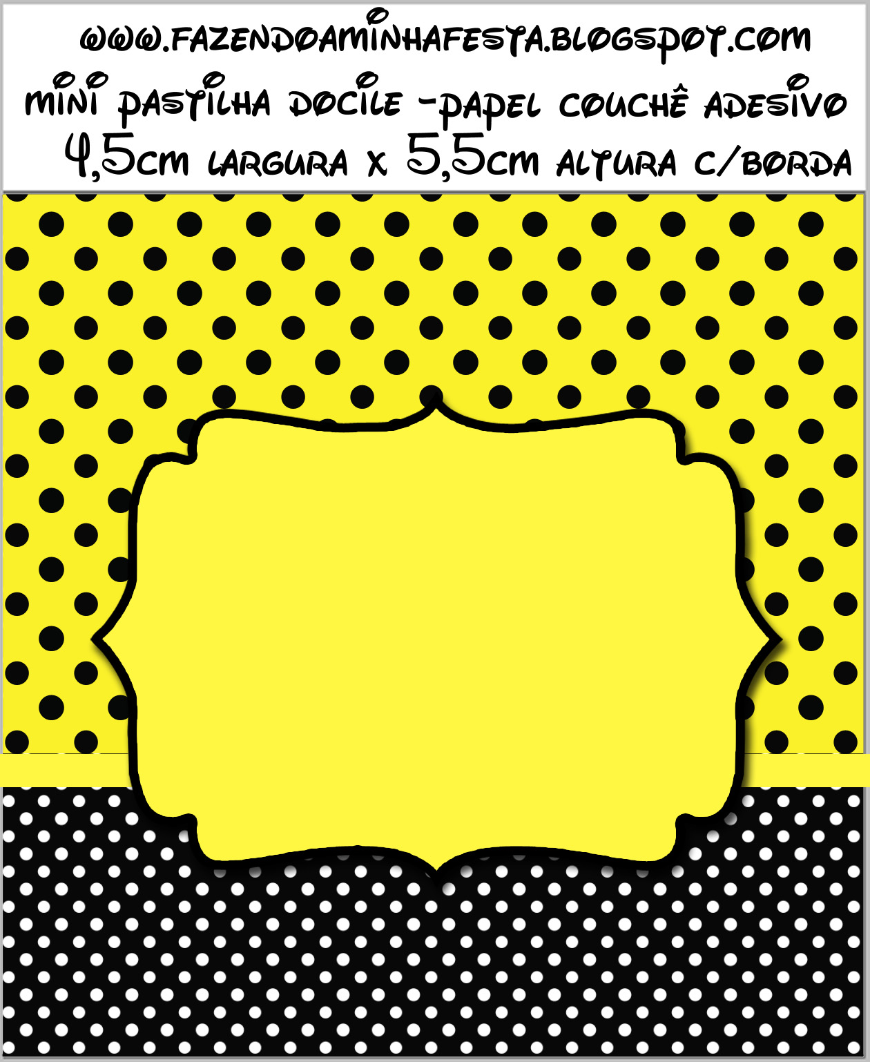 Rótulo Mini Pastilha Docile Poá Amarelo, Preto e Branco: