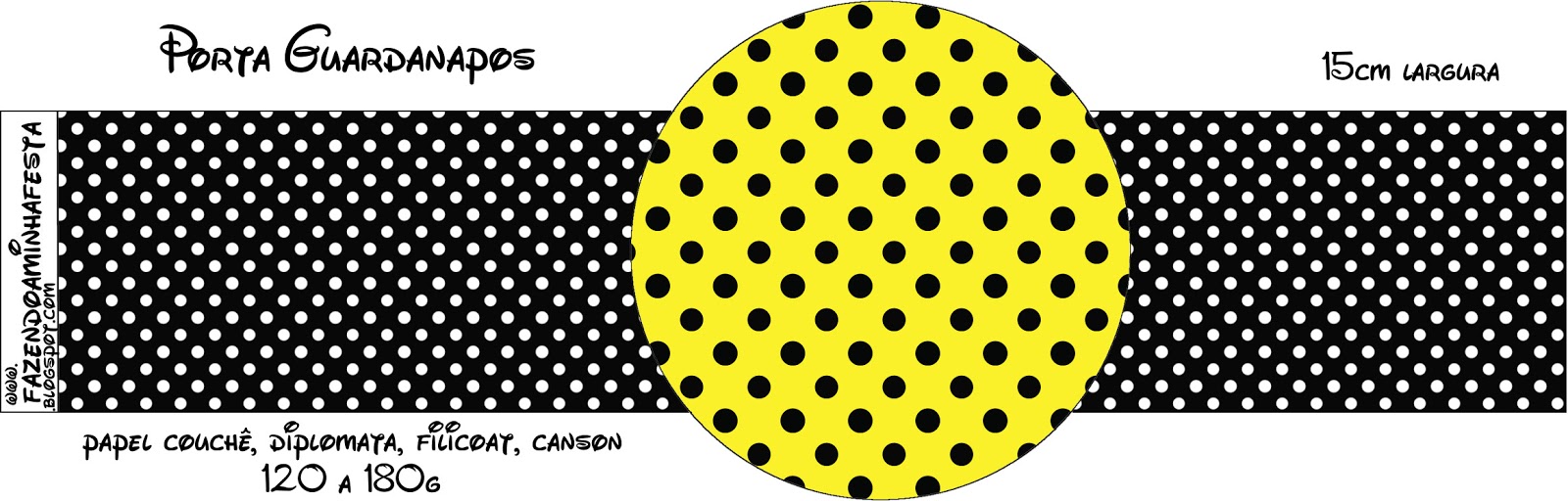 Rótulo Menu Poá Amarelo, Preto e Branco: