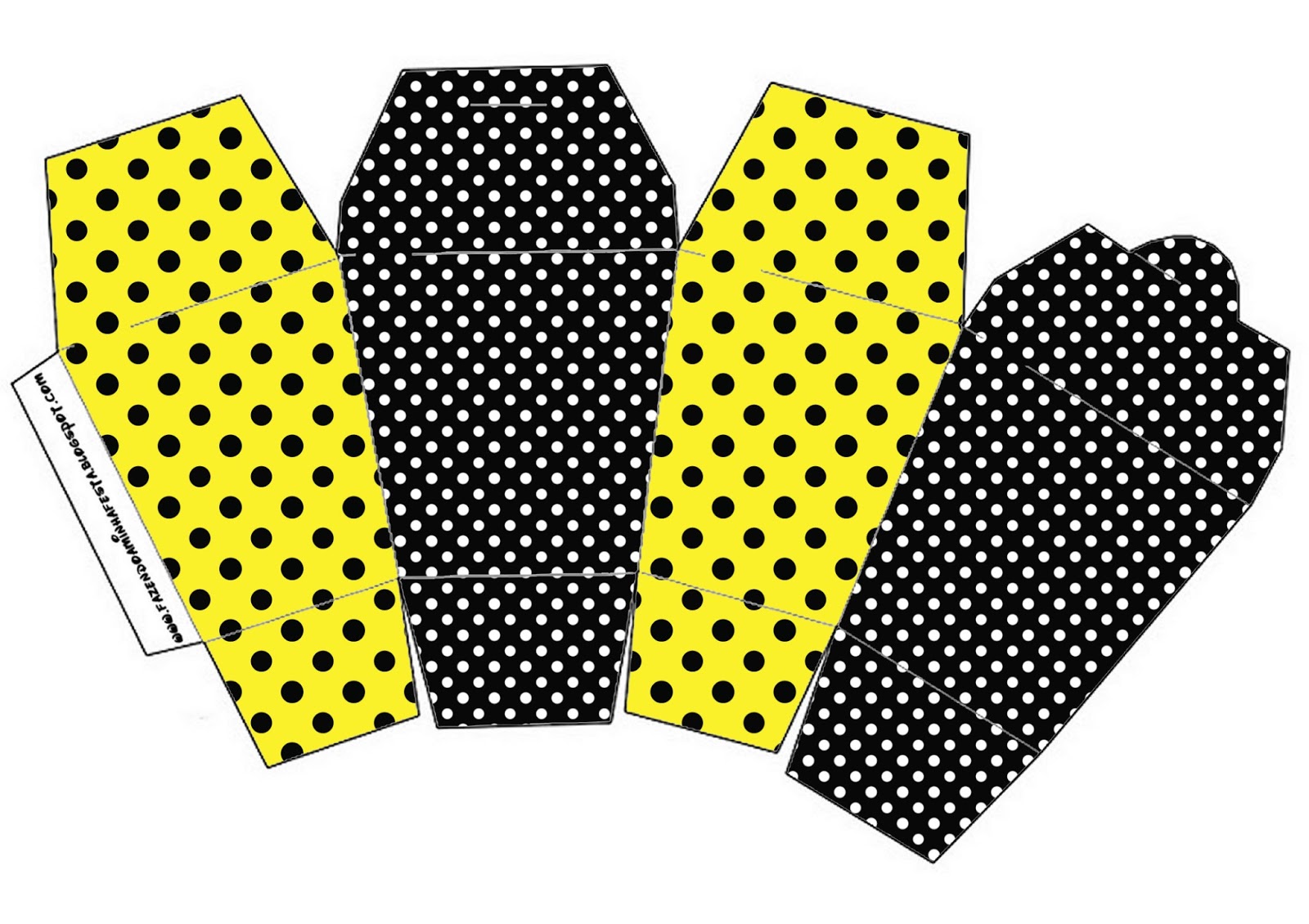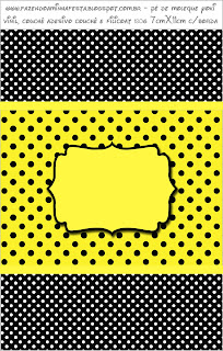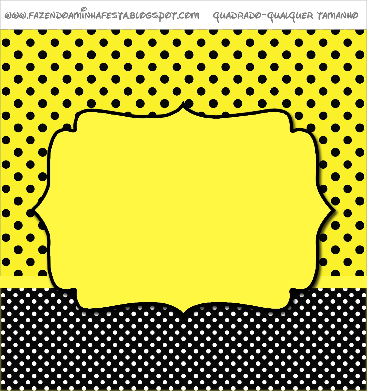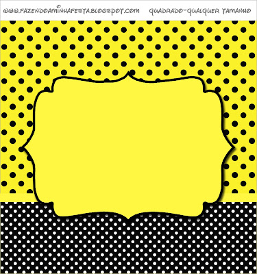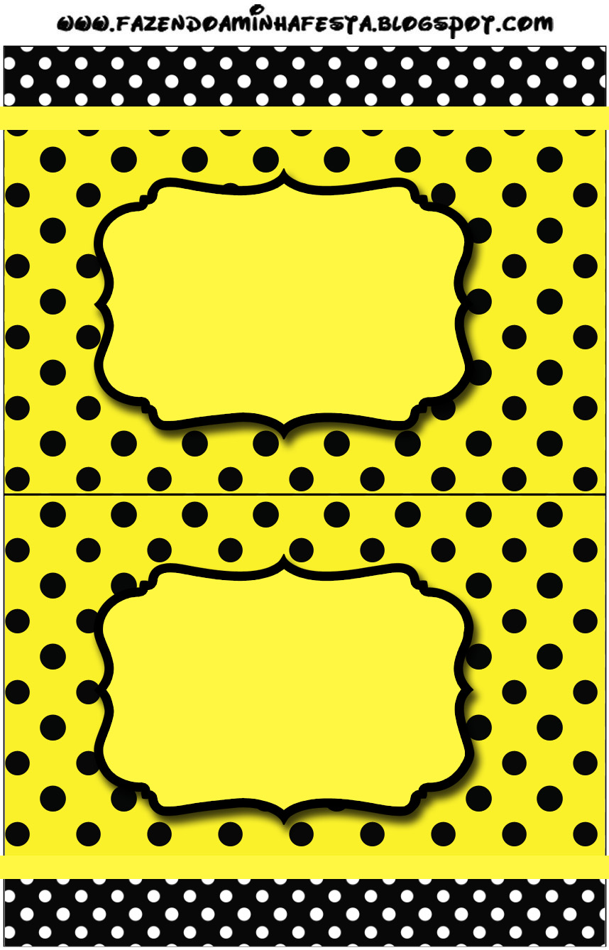 Poá Amarelo, Preto e Branco – Kit Completo com molduras para convites, rótulos para guloseimas, lembrancinhas e imagens!