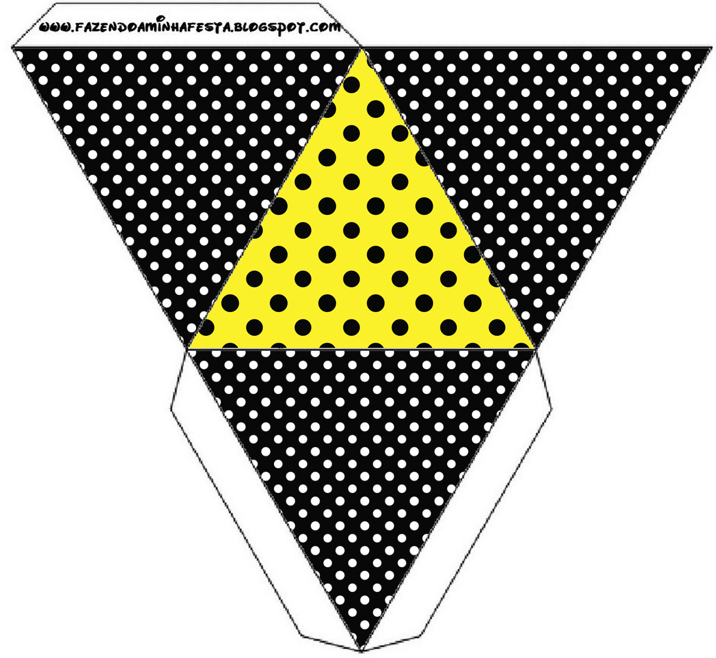Caixa Pirâmide Poá Amarelo, Preto e Branco: