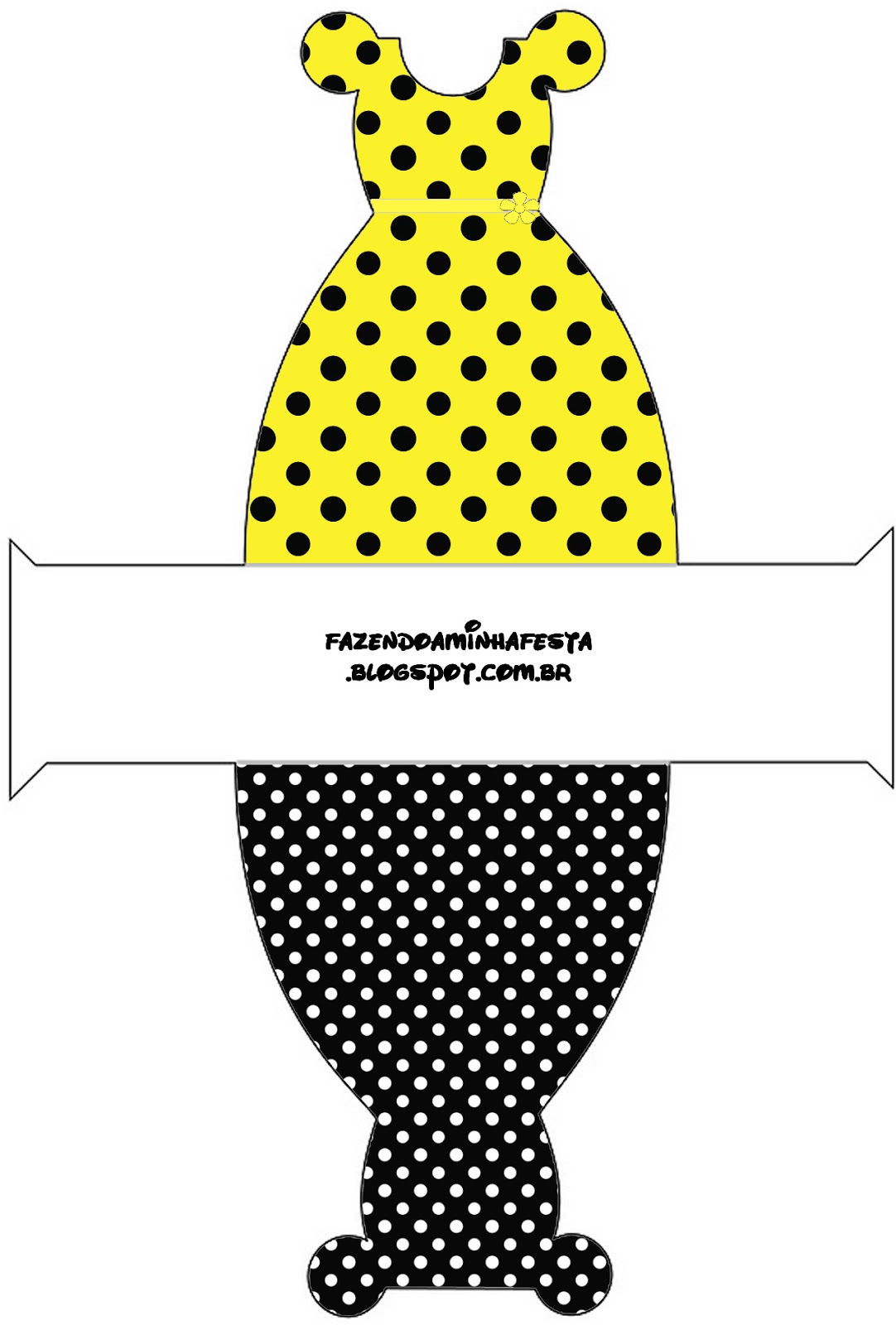 Convite Vestido Poá Amarelo, Preto e Branco: