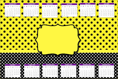 Convite Calendário 2013 Poá Amarelo, Preto e Branco: