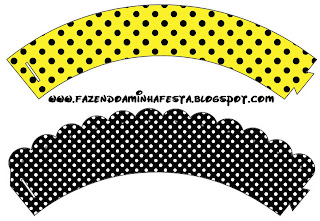 Saias Wrappers para Cupcakes Poá Amarelo, Preto e Branco: