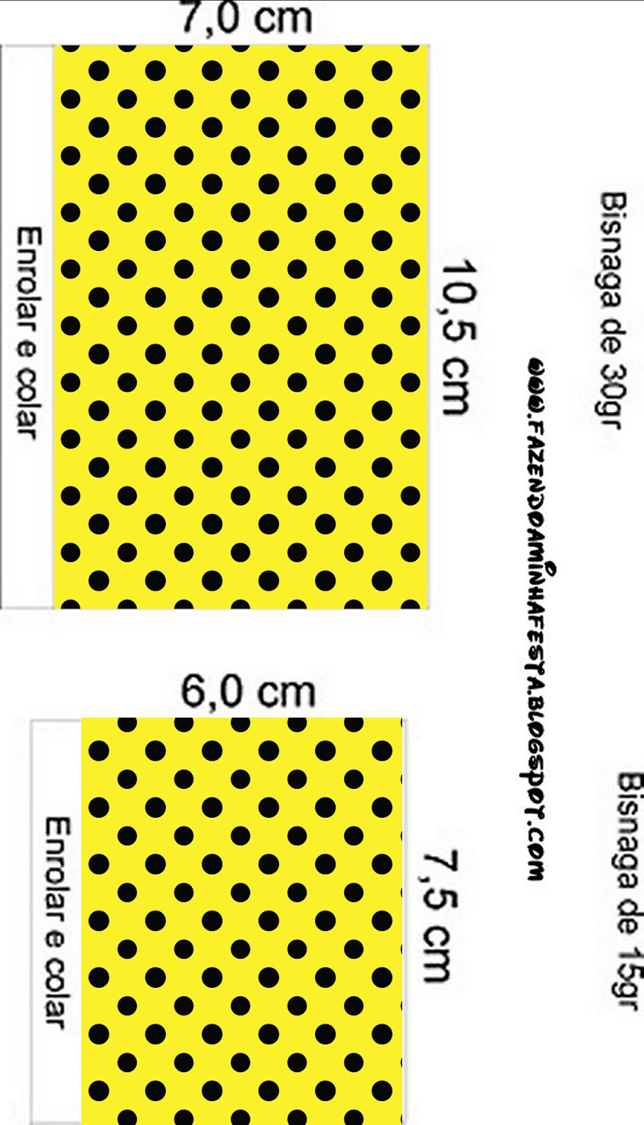 Rótulo Mini M&M Poá Amarelo, Preto e Branco:
