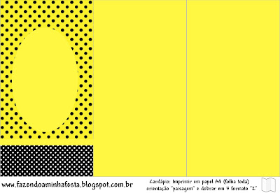 Moldura Convite e Cartão Poá Amarelo, Preto e Branco: