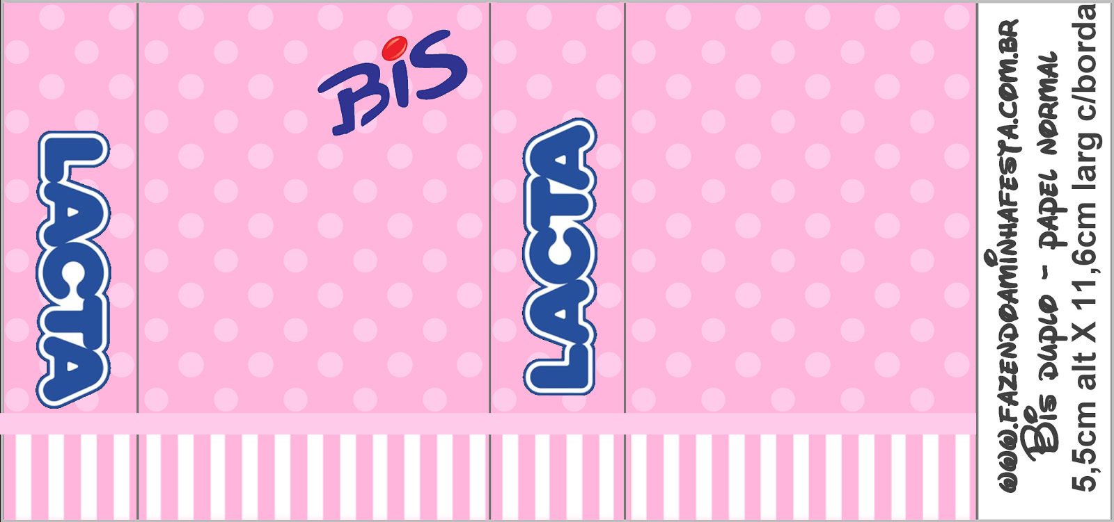 Rótulo Bis com Logo Lacta Poá e Listra Rosa: